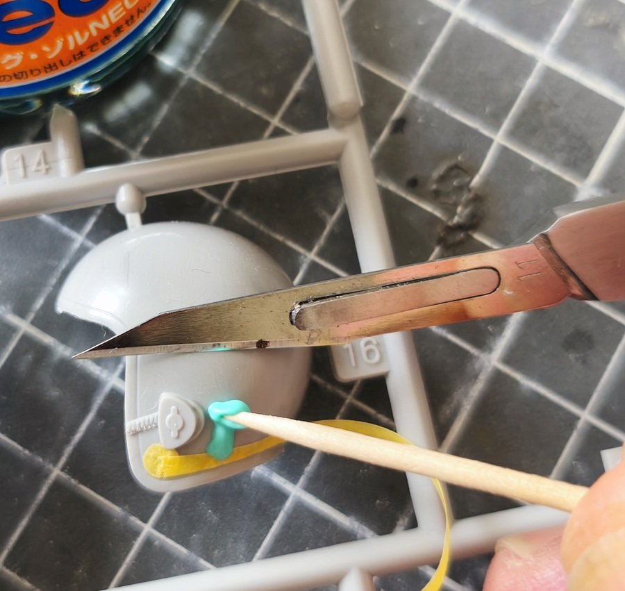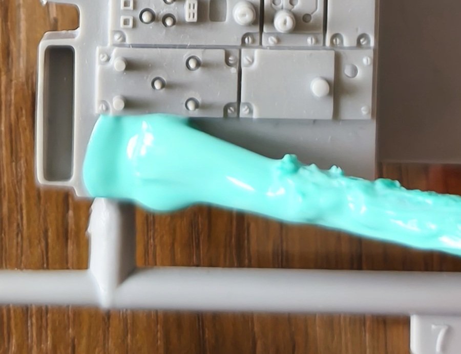 - Il est possible de diluer légèrement le masque liquide pour le fluidifier (Mr. Masking Sol avec de l’eau)