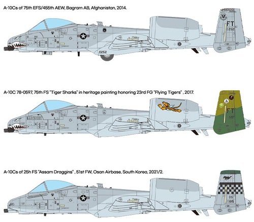 Décalcomanies Cartograf : marquages pour 11 avions, y compris motifs heritage “Flying Tigers”, Osan AB, etc.