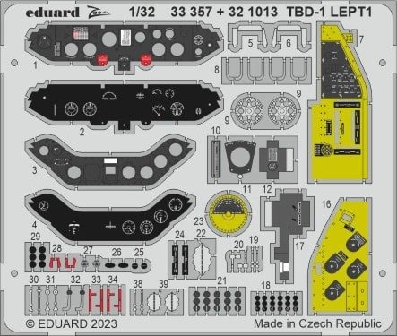 Ce set général d’améliorations Eduard 321013, photo‑découpé Color PE, sublime l’intérieur de la maquette Trumpeter TBD‑1 Devastator au 1/32. Conçu pour enrichir cockpit, consoles et panneaux internes sans modifier le kit plastique d’origine, il offre un rendu professionnel fidèle à l’échelle. Compatible exclusivement avec ce modèle d’avion