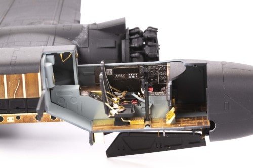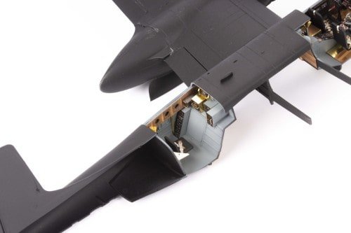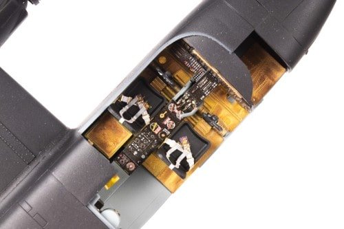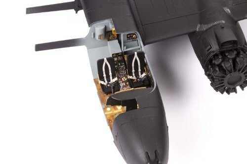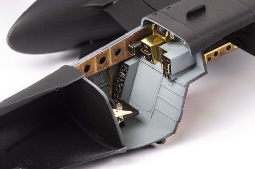 • Pièces en photo-découpe ultra-fines : comprend des éléments pour le cockpit (tableau de bord, ceintures de sécurité, pédales de gouvernail), le moteur, les volets, les trappes de train et les grilles d’aération.
