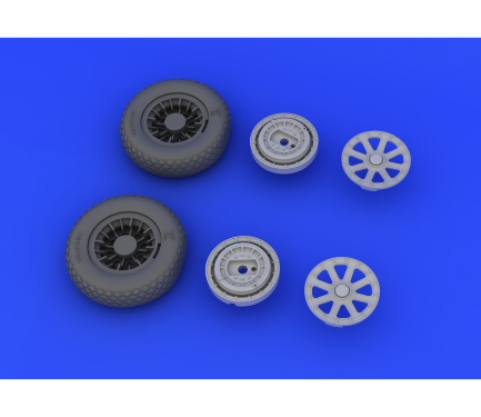 La référence Eduard 632019 propose un set de roues en résine ultra-détaillées de la gamme Brassin, spécialement conçu pour le F4U-1 Corsair à l’échelle 1/32, compatible avec le kit Tamiya. Ce kit de super détaillage permet de remplacer les roues standard par des pièces en résine d’une finesse remarquable, avec des jantes précises, des sculptures réalistes et un effet de charge subtil (roues légèrement écrasées).
