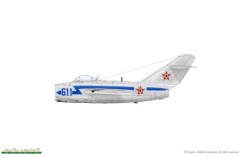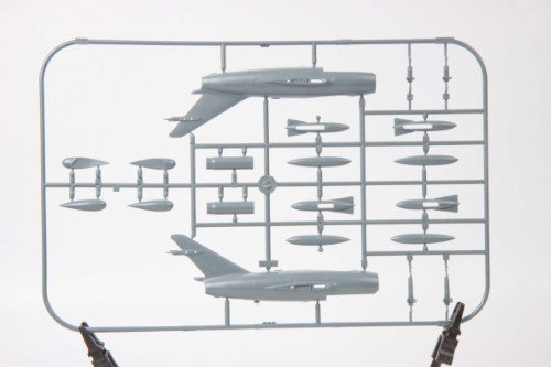 Cette édition Weekend propose 4 décals authentiques. Vous appliquez des marquages soviétiques ou satellites de 1950-1953. Le camouflage argent ou vert/gris convient aux missions Corée. Par ailleurs, canons NR-23 et réservoirs s’intègrent naturellement.