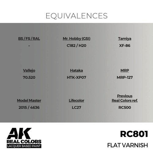 La référence RC801 est un vernis mat spécialement formulé pour offrir une finition parfaite et anti-reflet sur vos maquettes. Ce vernis protège la peinture tout en réduisant la brillance, idéal pour obtenir un rendu réaliste sur vos avions, véhicules et autres modèles réduits.