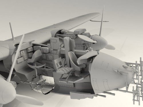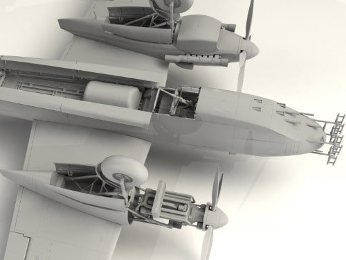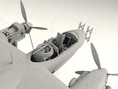 Les nacelles moteurs BMW 801 offrent une finesse remarquable. Vous ajoutez cylindres, capots et hélices réalistes. Ainsi, le nez radar Lichtenstein saute aux yeux. Le train d’atterrissage rétractable présente des struts solides. Donc, vous choisissez la pose au sol ou en vol sans effort.