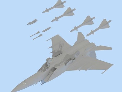 Ce kit convient aux maquettistes expérimentés. Vous appliquez jus pour ombres supersoniques et usure. Par conséquent, votre Foxbat-E domine en vitrine, honorant sa vitesse de 3 000 km/h et plafond de 20 700 m. Finalement, il incarne le premier intercepteur Mach 3 avec réalisme supérieur.