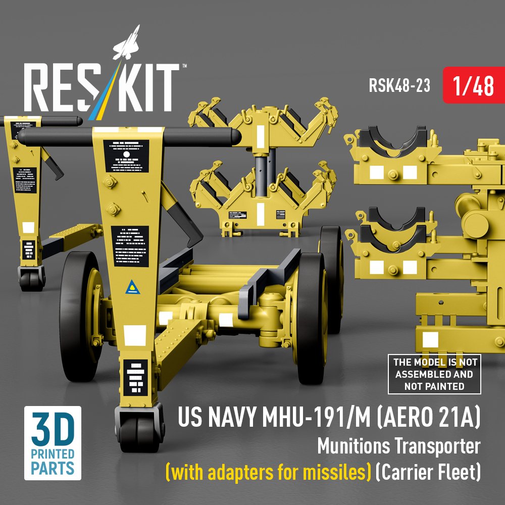 RESKIT RSK48-0023 US NAVY MHU-191/M (AERO 21A) Munitions Transporter (with adapters for. missiles) (Carrier Fleet) (3D Printed) (1/48)