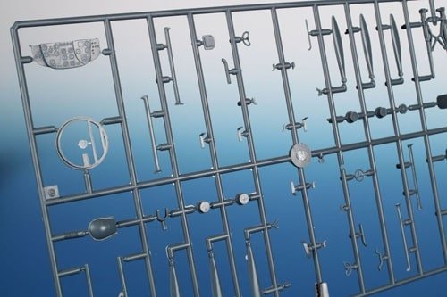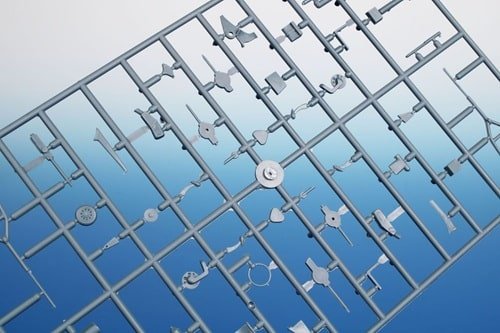 117 pièces en plastique + 55 pièces en résine + 19 pièces transparentes + 8 photodécoupes