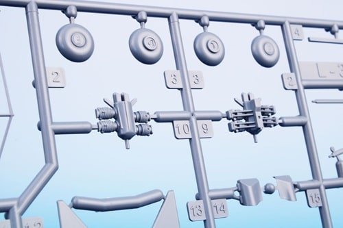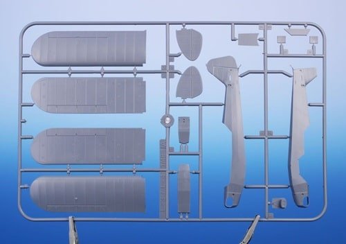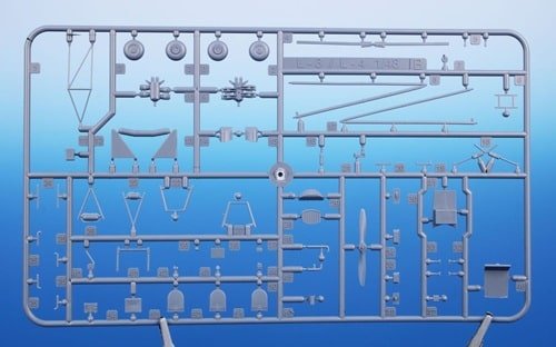 • 68 pièces en plastique gris (+ environ 11 réservées), 6 pièces transparentes, 18 pièces photodécoupées, et même une pièce imprimée en 3D pour de petits composants détaillés.