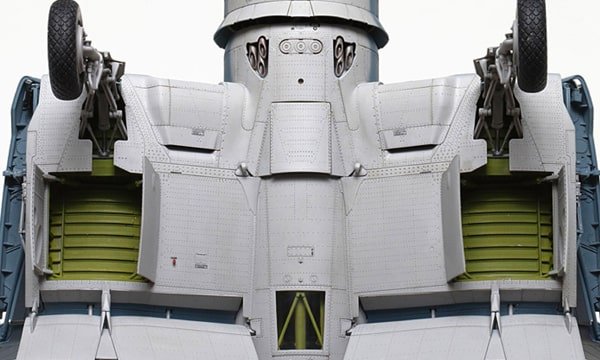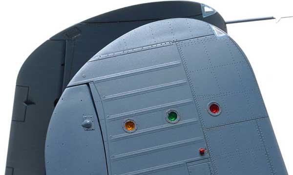 Les ailes inversées et les volets mobiles permettent de représenter l’avion en vol ou au sol.