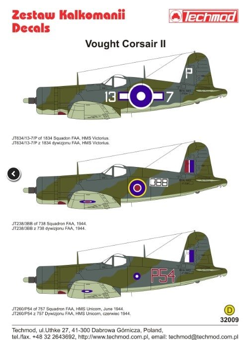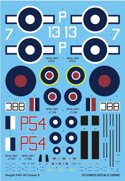 En conclusion, la planche TECHMOD TM32009 représente un choix incontournable pour les maquettistes souhaitant reproduire un Vought F4U-1A Corsair Royal Navy avec des marquages authentiques et détaillés.